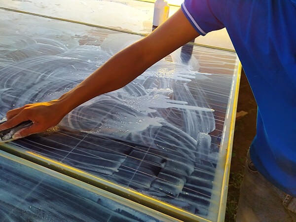 Việc thường xuyên vệ sinh, làm sạch các tấm pin mặt trời cũng rất quan trọng. Nếu tấm pin không được lau chùi thường xuyên, định kì, lớp bụi bám trên tấm pin sẽ làm việc biến đổi quang năng thành điện năng giảm xuống, làm giảm hiệu suất của thiết bị.