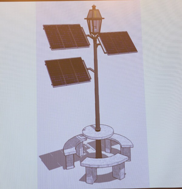 Anh Trung, thành viên của nhóm Thế hệ ưu tú chia sẻ, cây mặt trời được thiết kế với hình dáng một cái cây với thân cây nhỏ gọn, tăng tính thẩm mĩ cho cảnh quan. Cây có thể dùng để sạc pin cho các thiết bị điện tử và chiếu sáng vào ban đêm.