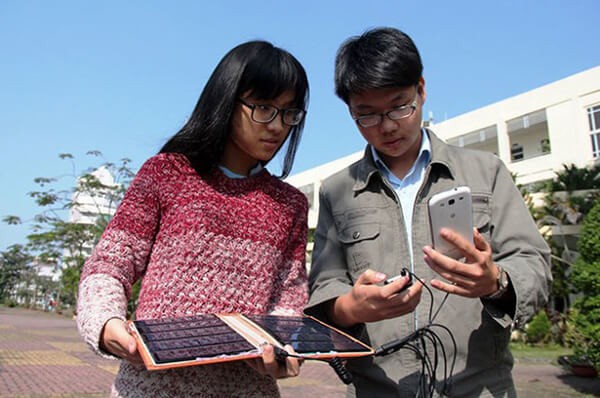 Sản phẩm “Sử dụng pin mặt trời để sạc pin điện thoại di động” do 2 bạn học sinh Nguyễn Thủy Tiên và Đoàn Trần Viên, lớp 11A4 Trường THPT chuyên Lê Quý Đôn, TP Đà Nẵng) đã giành giải Nhất tại “Hội thi Khoa học Kỹ thuật cấp TP Đà Nẵng”.