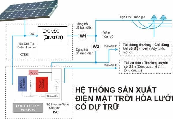 Nguồn điện từ mặt trời sẽ được ưu tiên sử dụng trước. Trong trường hợp, nguồn điện từ hệ thống điện mặt trời hòa lưới không đủ cung cấp tải tiêu thụ, khi đó mới sử dụng để điện lưới.