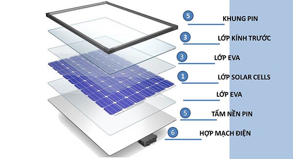 Tấm hấp thụ năng lượng mặt trời thực hiện quá trình biến đổi quang năng thành điện năng dựa trên hiệu ứng quang điện. Cấu tạo thành phần bao gồm: