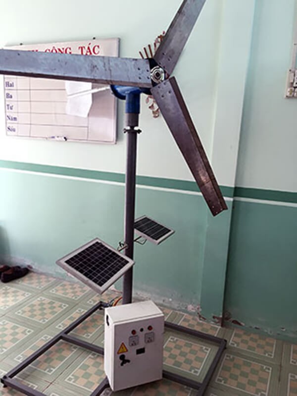 Máy phát điện sử dụng năng lượng mặt trời và gió là công trình nghiên cứu của thầy Phạm Công Danh – Phó phòng Giáo dục và Đào tạo huyện Châu Thành, Bến Tre.